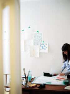 This series offers an intimate look into the studio of artist Mügluck in Montreal, where calm and silence define the space. The images evoke a sense of quiet reflection, highlighting the softness and tranquility that fuel her creative process.